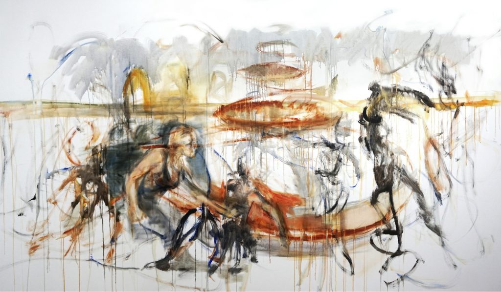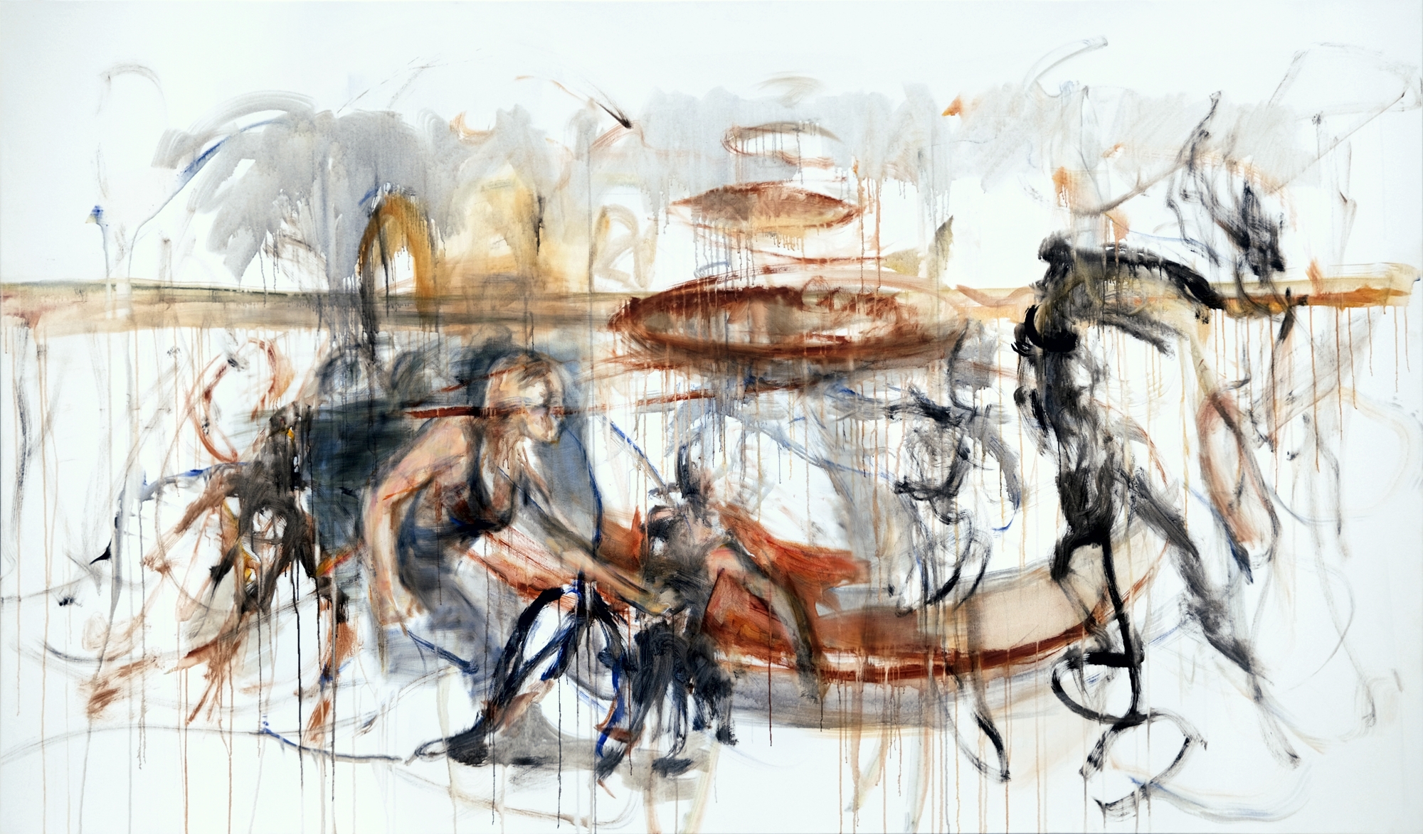 La donna e il fiume 2024, Acryl/Lwd, 190 x 320 cm